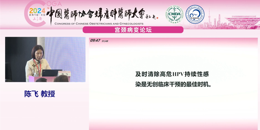 北京協(xié)和醫(yī)院陳飛教授就《清除高危HPV無創(chuàng)臨床干預》為題進行報告:
