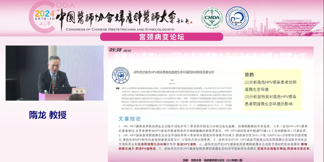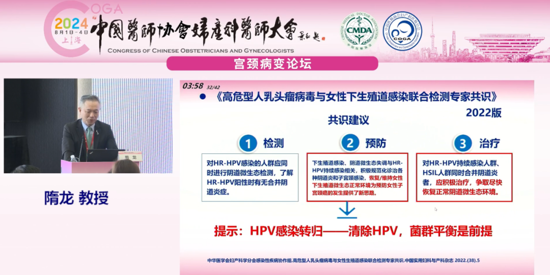 復旦大學附屬婦產科醫(yī)院隋龍教授就《陰道微生態(tài)調節(jié)與HPV轉歸》為題進行報告: