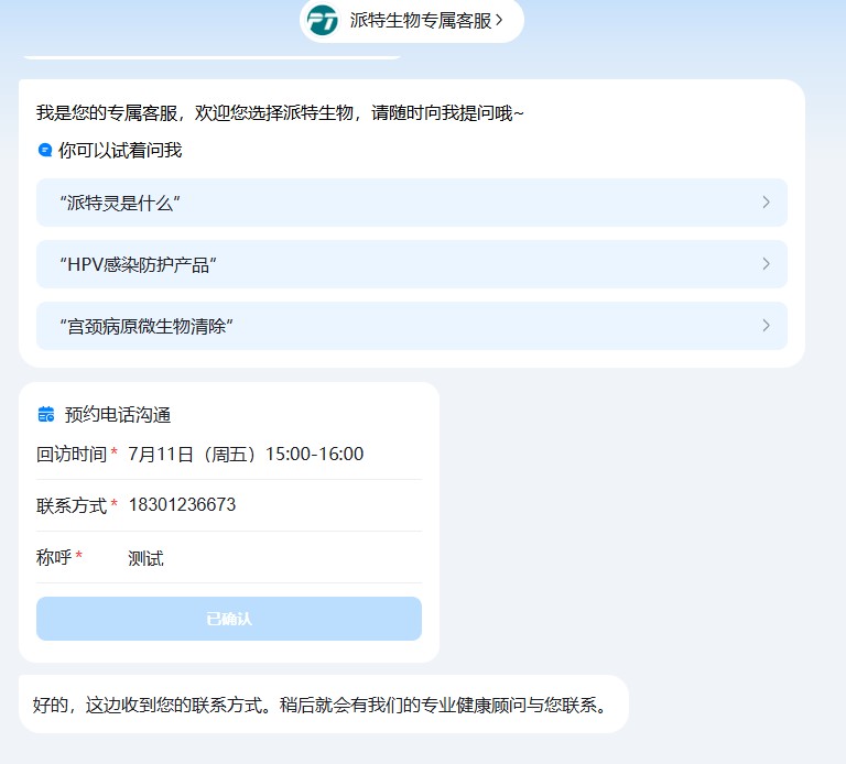 此次入駐百度巧艙,是派特靈在HPV防治領(lǐng)域深化AI應(yīng)用的重要一步。相較于2024年派特生物集團(tuán)與清智資本(依托清華大學(xué)智能產(chǎn)業(yè)研究院成立)孵化的醫(yī)者AI達(dá)成戰(zhàn)略合作時(shí)聚焦的“技術(shù)研發(fā)協(xié)同”,此次與百度巧艙的對(duì)接更側(cè)重“大眾服務(wù)觸達(dá)”——通過(guò)智能體技術(shù)優(yōu)化在線咨詢流程,為HPV感染者提供更及時(shí)、精準(zhǔn)的信息支持。據(jù)介紹,該智能體可輔助在線醫(yī)療人員快速響應(yīng)咨詢需求,有效緩解了咨詢高峰時(shí)段的服務(wù)壓力,尤其在科普HPV感染防治知識(shí)、解答日常健康管理疑問(wèn)等方面發(fā)揮了顯著作用。