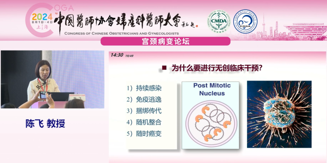北京協(xié)和醫(yī)院陳飛教授就《清除高危HPV無創(chuàng)臨床干預》為題進行報告:
