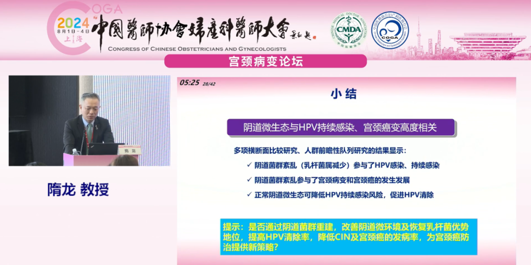 復旦大學附屬婦產科醫(yī)院隋龍教授就《陰道微生態(tài)調節(jié)與HPV轉歸》為題進行報告: