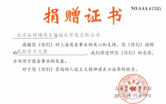 2022年6月,北京派特博恩生物技術(shù)開(kāi)發(fā)有限公司(派特生物)再次向蒲公英漸凍人關(guān)愛(ài)中心捐贈(zèng)善款21萬(wàn)元,用于派特生物關(guān)愛(ài)漸凍人公益項(xiàng)目——其中用于漸凍人生命支持設(shè)備減負(fù)項(xiàng)目為15萬(wàn)元,用于漸凍人護(hù)理慰問(wèn)禮包發(fā)放活動(dòng)為6萬(wàn)元。