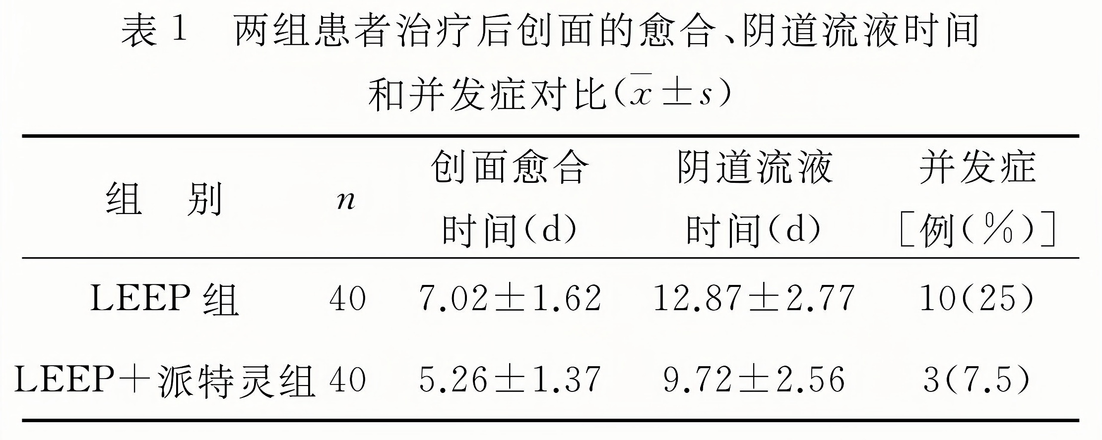 LEEP+派特靈組的創(chuàng)面愈合和陰道流液時(shí)間均顯著短于LEEP組(P<0.05)。